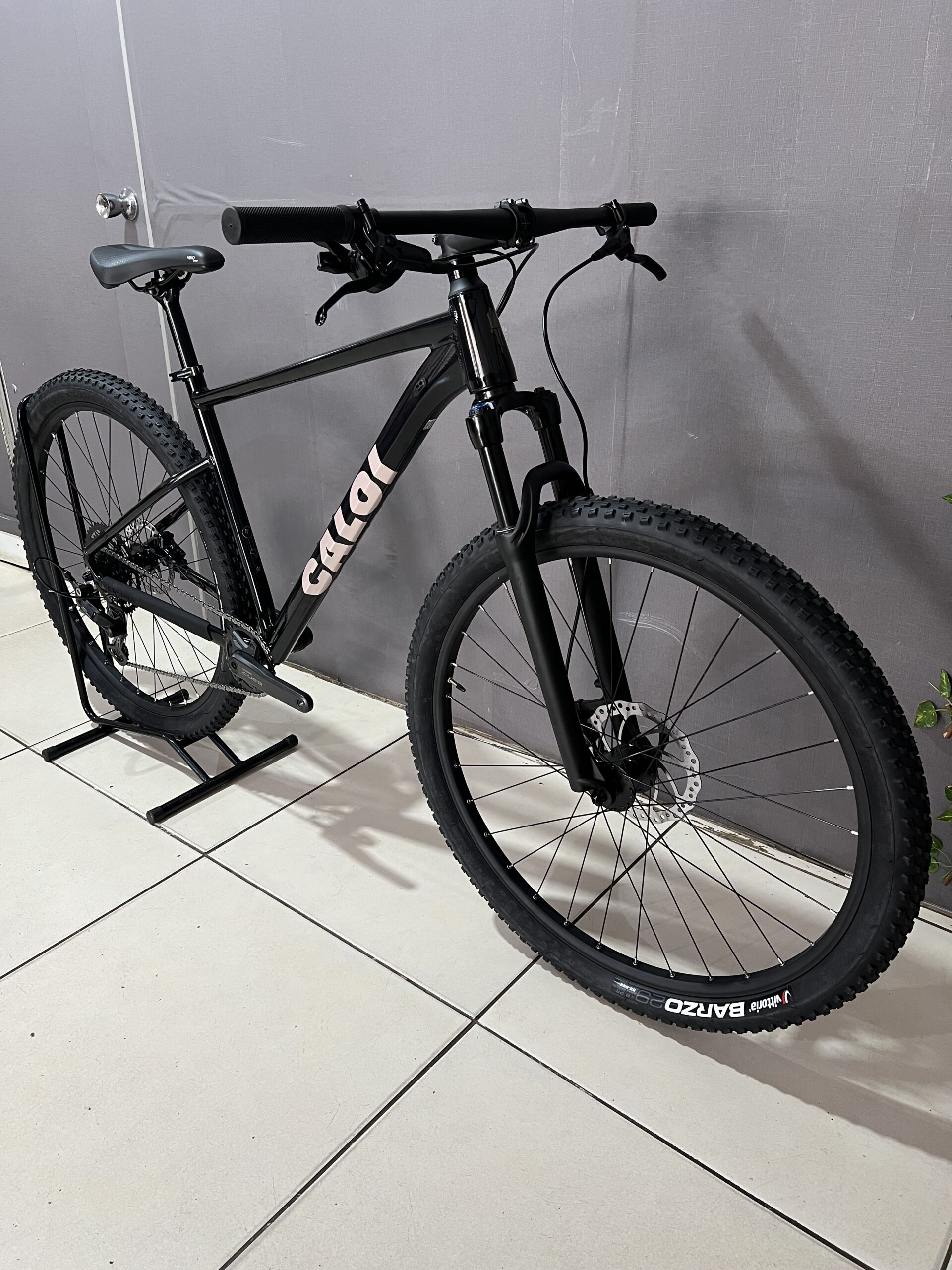 - Garfo Caloi, com 100mm de curso, tapered, Quick Release, trava hidráulica no Crown